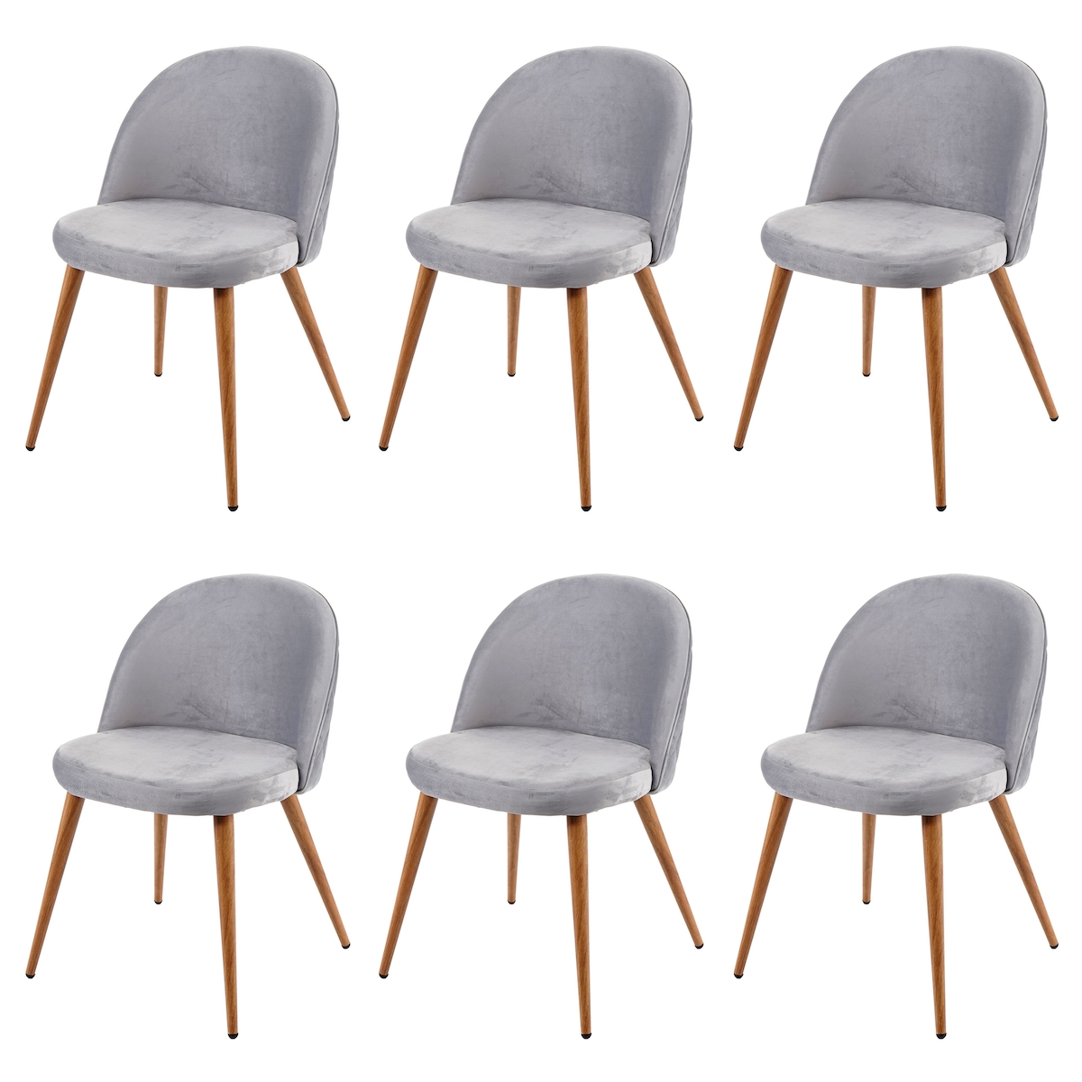 Mendler 6er-Set Esszimmerstuhl HWC-D53, Stuhl Küchenstuhl, Retro 50er Jahre Design Samt ~ hellgrau