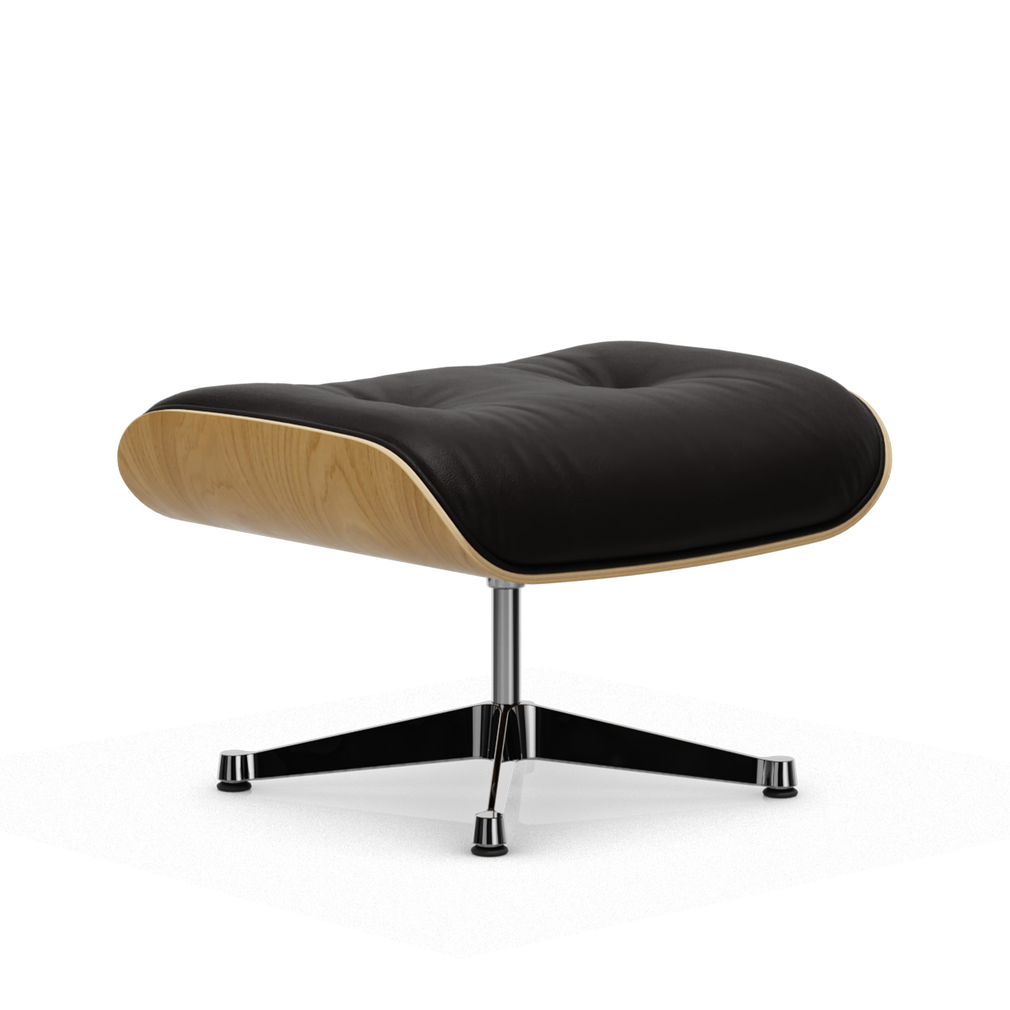 Vitra - Eames Lounge Ottoman Black Chestnut Leather Natural Chocolate 68 Polished Aluminium - Fotpallar - Charles & Ray Eames - Läder/Metall/Trä