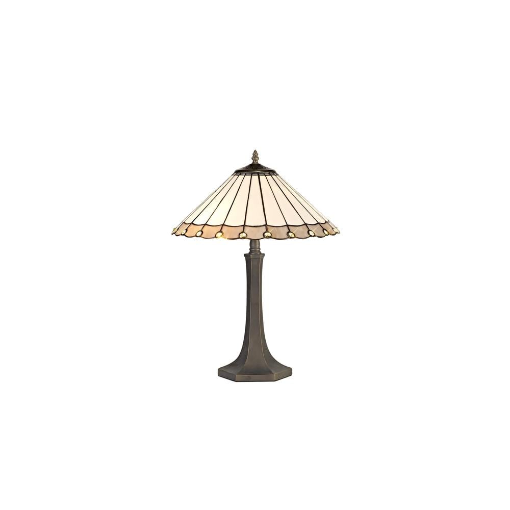 Sleek 2 Light Octagonal Table Lamp E27 With 40cm Tiffany Shade Grey/Cream/Crystal/Aged Antique Brass Luxuria
