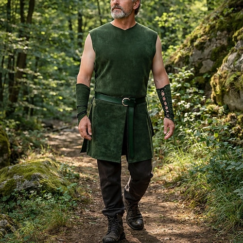 Set Retrò Vintage Medievale Rinascimento Gilet Cintura in Vita Tutore per polso con accessori Senza maniche Elfo Ranger Girocollo Costume Unisex Fantasia Halloween Carnevale Fiera Rinascimentale LARP