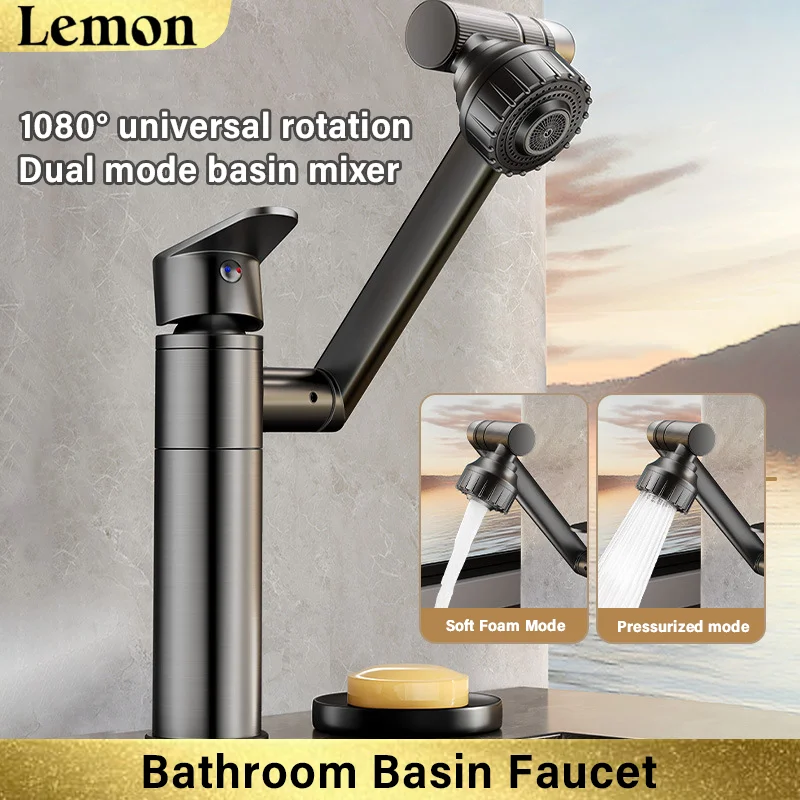 Bathroom Sink Faucet,Digital Display Multifunctional Washbasin Faucet,Brass Single Handle One Hole Rotatable Bath Tap(White/Gun Grey/Black)