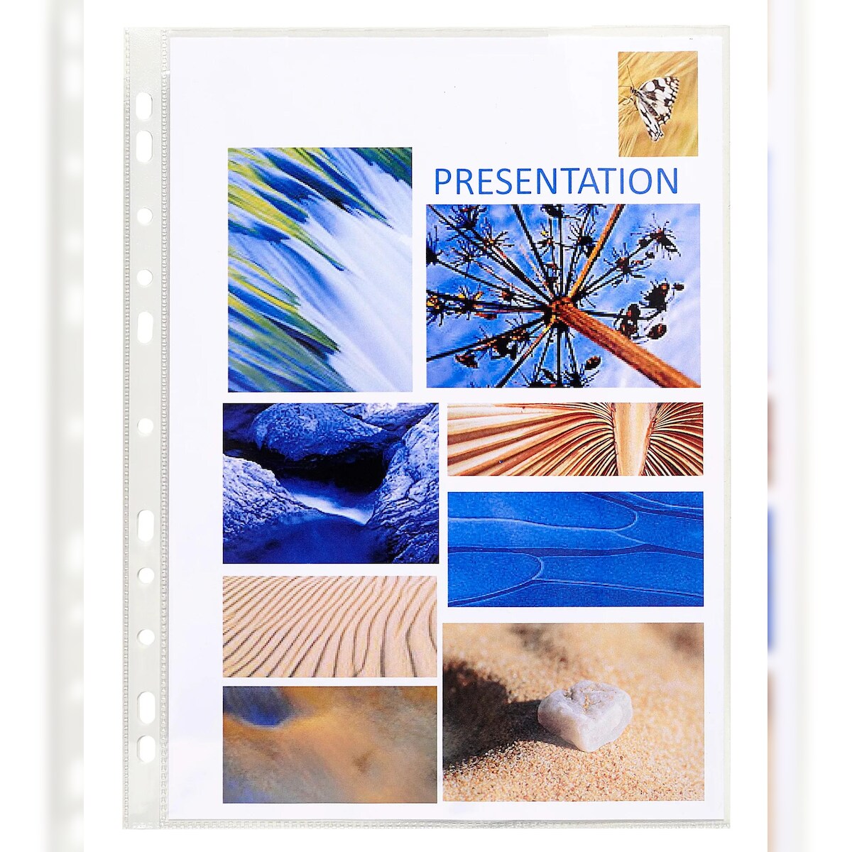 Exacompta 3194E Packung mit 100 Prospekthüllen gelocht aus glattem PVC 80µ, für Format DIN A4 hoch - Kristall