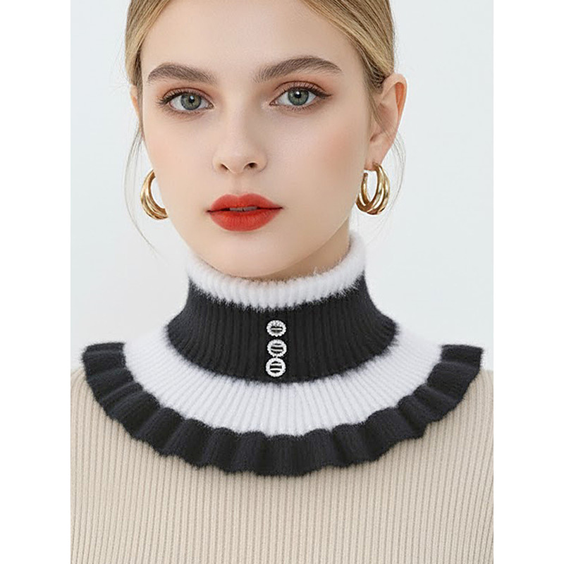 Women's Christmas Knitted Fuzzy Collar – Soft and Cozy Wool Blend with Ruffle Design, Available in Multiple Colors, Perfect for Winter and Holiday Wear