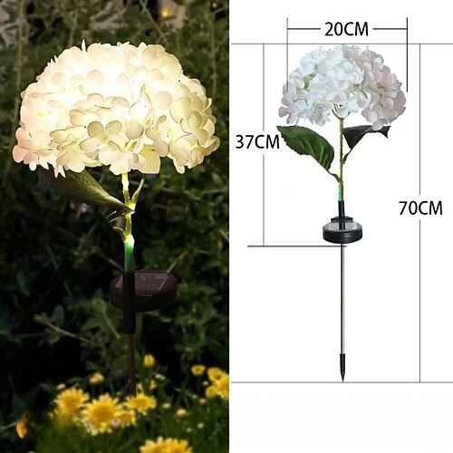 luci solari da giardino per esterni, luci da giardino a LED impermeabili alimentate ad energia solare con fiori di ortensia, per patio, cortile esterno, vialetto decorativo, arredamento