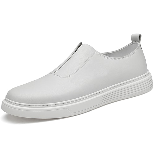 scarpe slip-on bianche da uomo in pelle, minimaliste e comode, adatte a professionisti impegnati in ufficio e in contesti informali