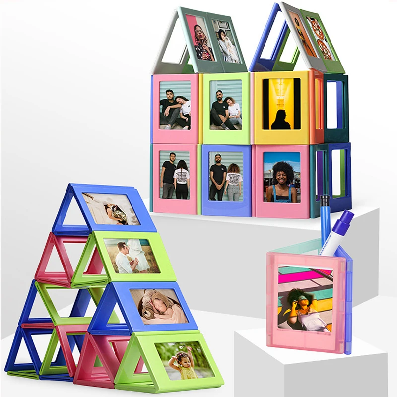 Boho Oblong 3 Inch Horizontal Plastic Magnetic Photo Frame, for Fujifilm Instax Negatives, Photo Display, with Record Beautiful Moments, for Office, Kitchen, Living Room, Bedroom Decoration, Valentine