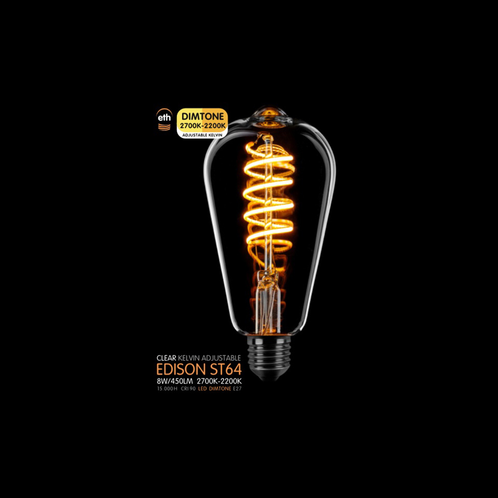 ETH LED Spiral Edison - E27 - dimtone - 8W - 2700K à 2200K - transparent