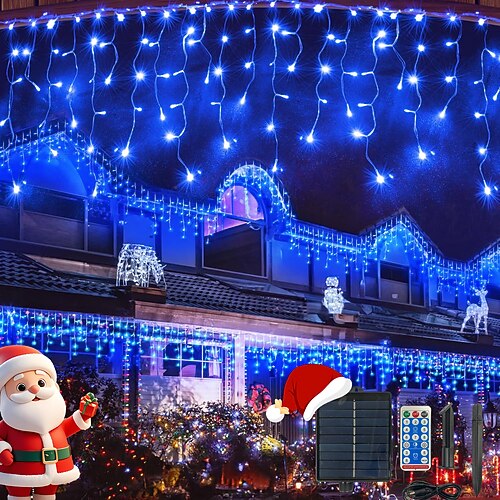 Luci a ghiacciolo solari impermeabili 10m 400 LED 48 gocce luci decorative collegabili a filo chiaro timer telecomando luci per cortile balcone albero portico