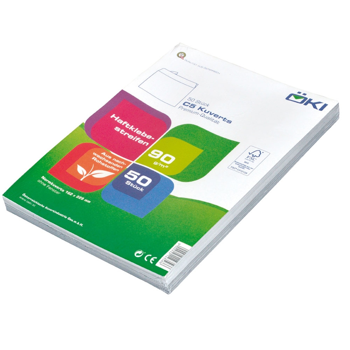 OKI 250x ÖKI Briefumschläge Kuvert C5 162x229mm weiß 90 gr. Haftstreifen