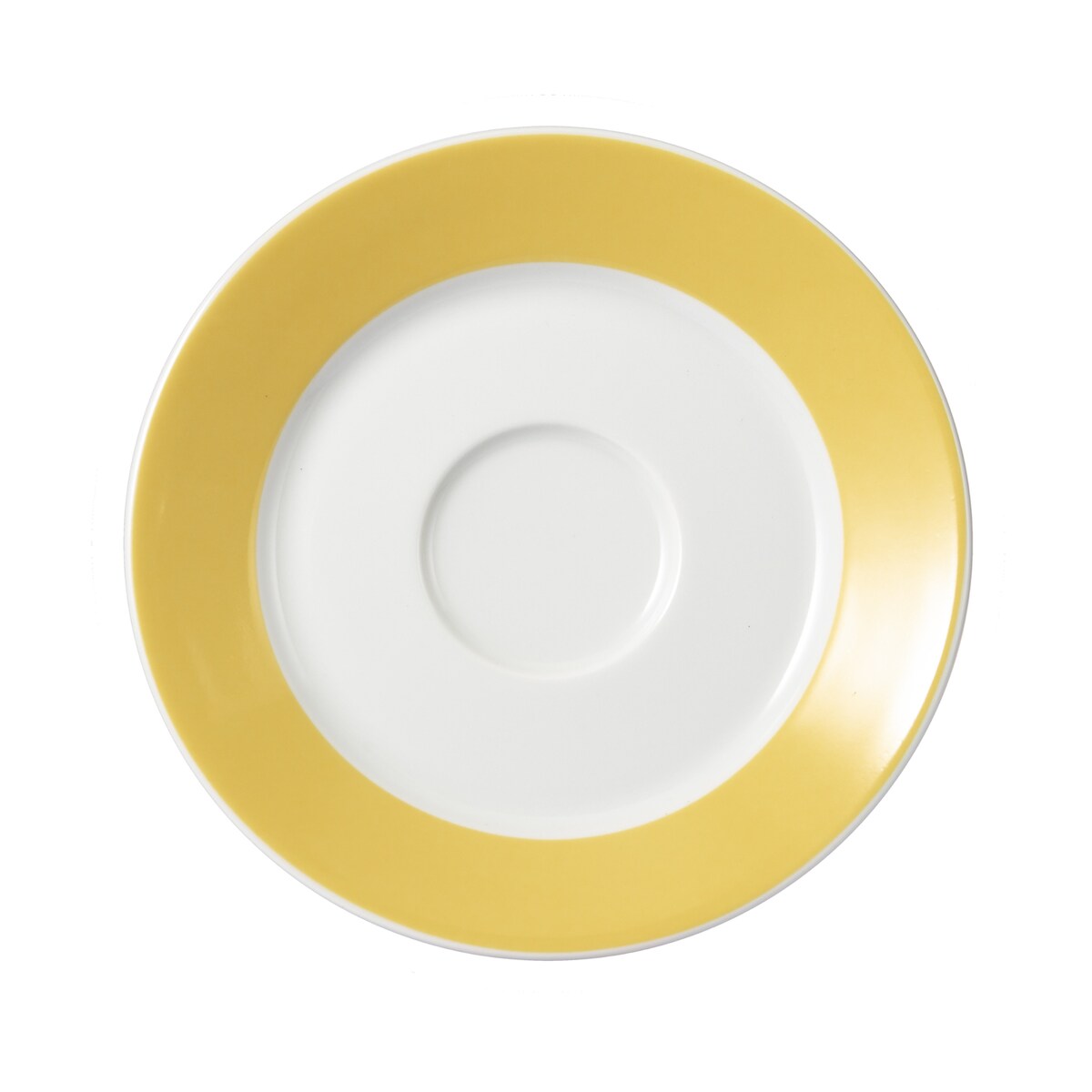 6 x MERIDIAN Suppen-Untertasse, 16cm, gelb, aus Porzellan, von Caterado. Made in Europe.