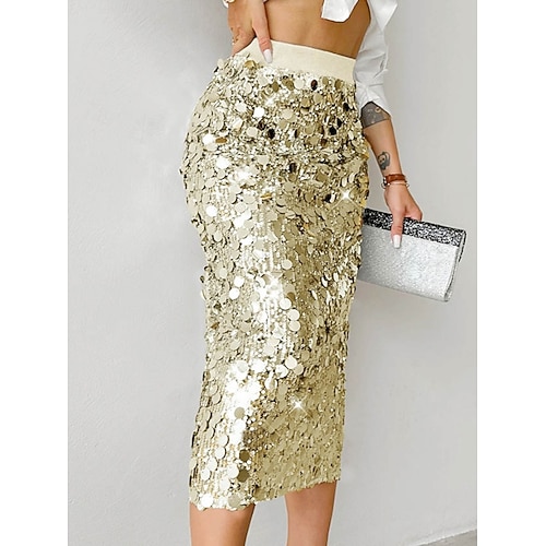 Per donna Gonna Aderente Elegante Moda Midi Vita Alta Gonne Semplice Paillettes Elasticizzato Feste Streetwear Argento Nero Oro Primavera Poliestere