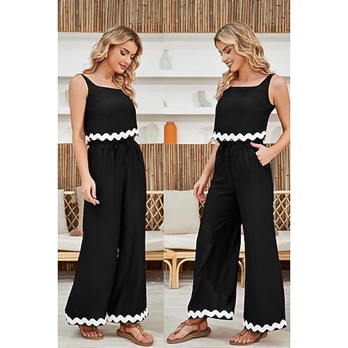 Damen-Tank-Top-Hose, gewellter Saum, lässiger Mode-Anzug