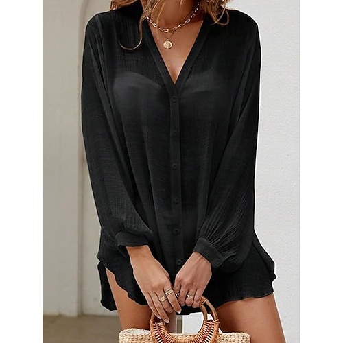 Per donna Mini Abito Abito Bianco Abito da Spiaggia Abito nero Copricostume Elegante Moda Classico Quotidiano All'aperto Spiaggia Vestibilità comoda Semplice Manica Lunga Scollo a V Nero Bianco