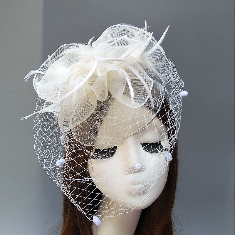 Feather / Net Kentucky Derby Hat / Fascinators / Hats with Feather / Floral / Flower 1PC Wedding / Special Occasion / Horse Race Headpiece