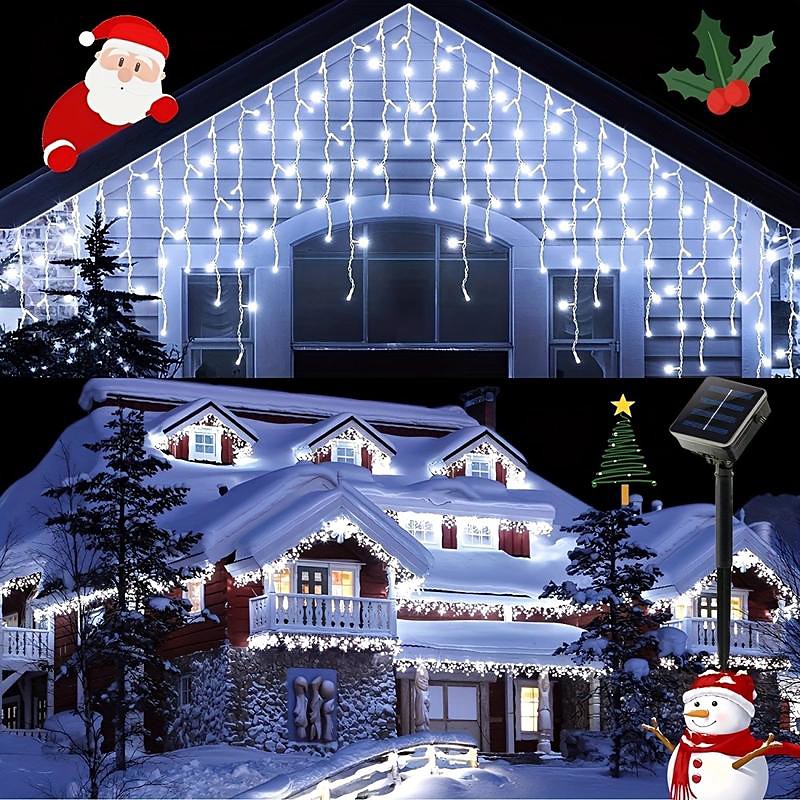 1pc LED Solar Icicle String Light, 4M-96Leds 8 Modes, Waterproof Curtain Icicle Light Fairy String Light, Roof, Commercial Street Decoration