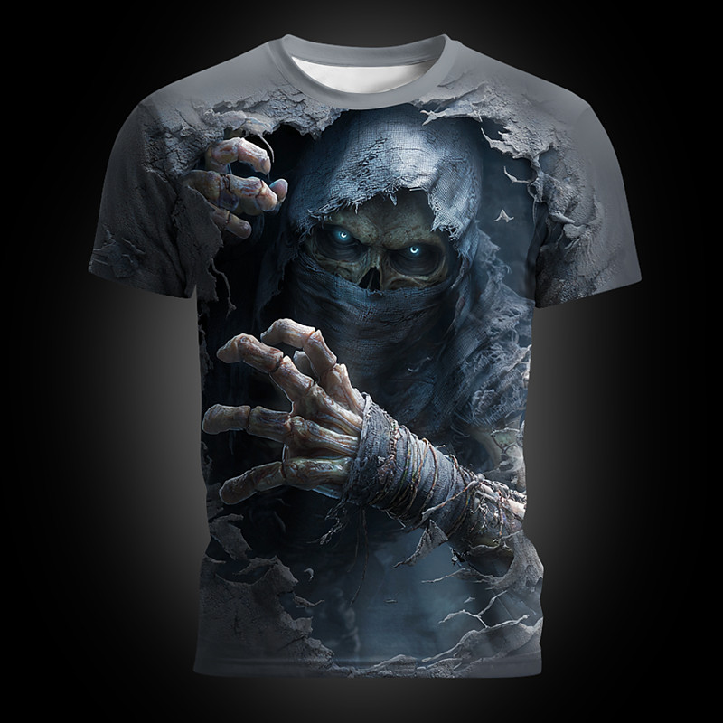 Men's Skull 3D Reaper T Shirt Short Sleeve T shirt 3D Print Crew Neck Shirt Exaggerated Designer Horror Party Street Holiday Black 1 Black Gray Summer Spring All Seasons Clothing Apparel S M L XL XXL