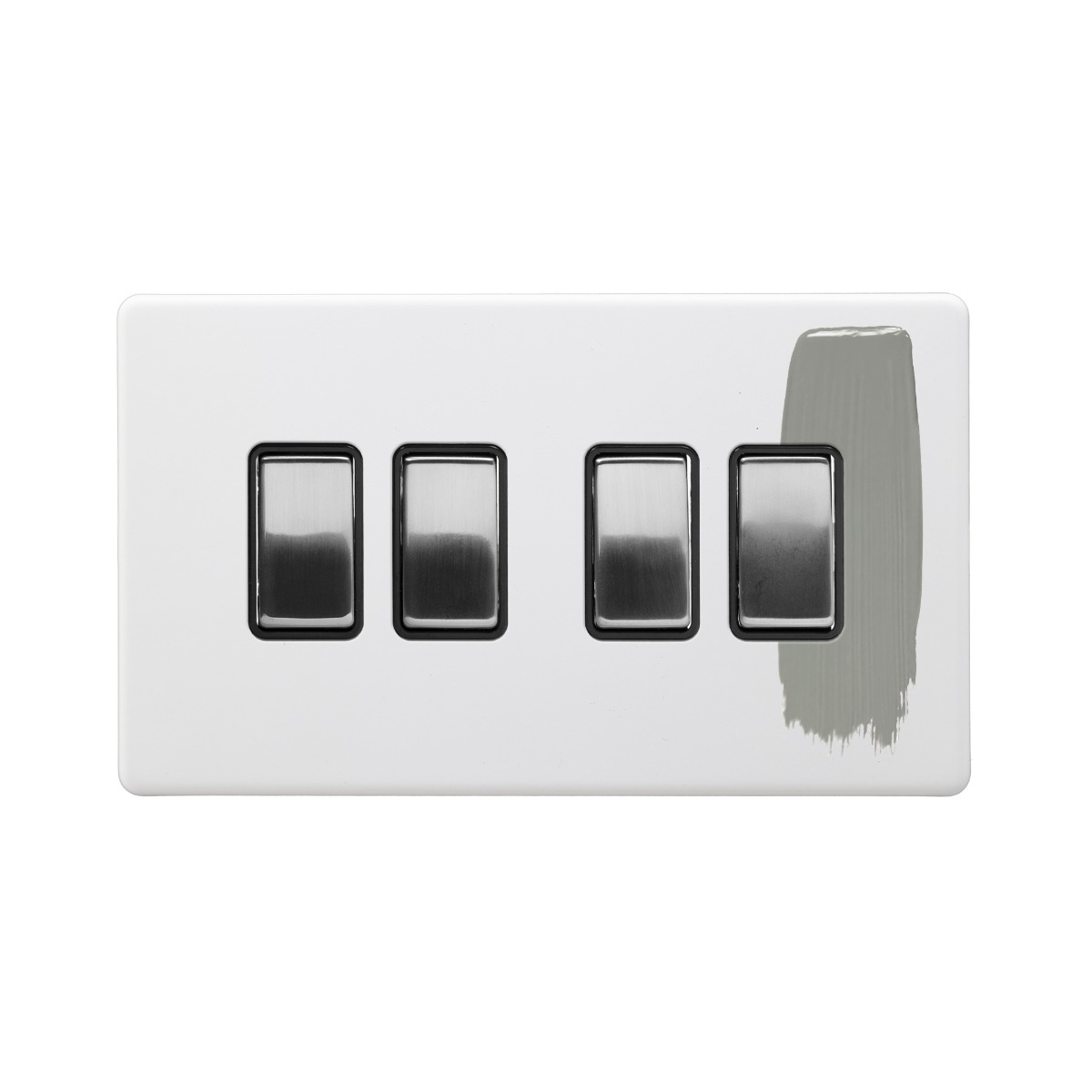 Soho Lighting Primed Paintable 4 Gang 2 Way 10A Light Switch with Brushed Chrome Switch and Black Insert - Size: 86mm x 146mm x 4.5mm