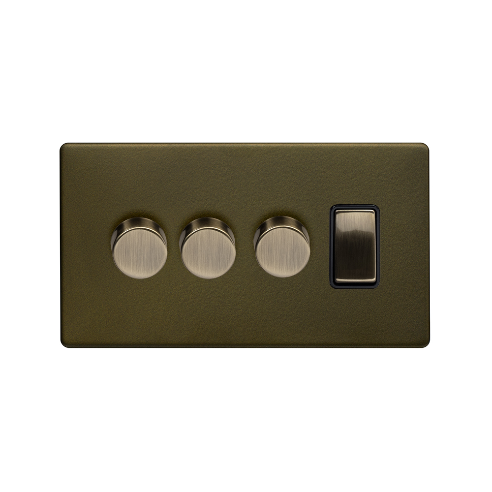 Soho Lighting Bronze 4 Gang Switch with 3 Dimmers (3 x 2-Way intelligent Dimmer & 1 x 2-Way Switch)