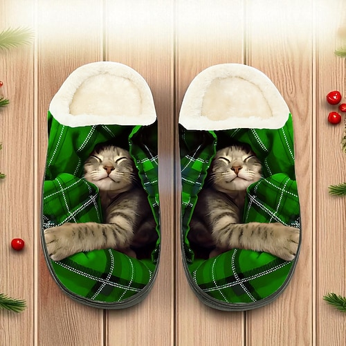 pantofole natalizie da donna con gatti - comode scarpe da interno in pile con stampa di gattini con cappello di Babbo Natale, calde calzature da casa in peluche per regali invernali e per le feste