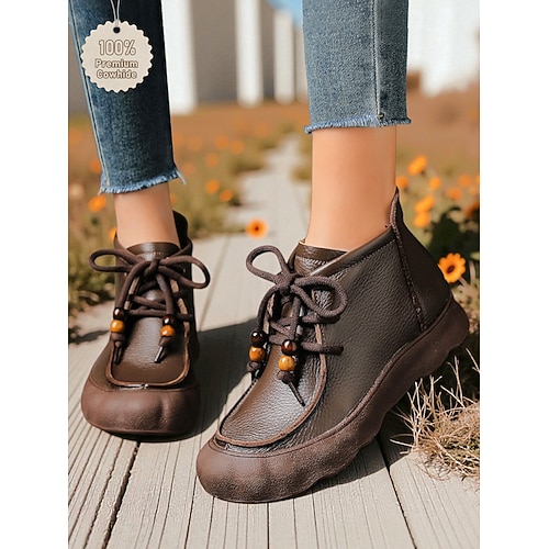 scarpe comode da donna in vera pelle con lacci – suola morbida e flessibile, stile casual retrò, ideali per l'uso quotidiano, passeggiate, viaggi e attività all'aperto