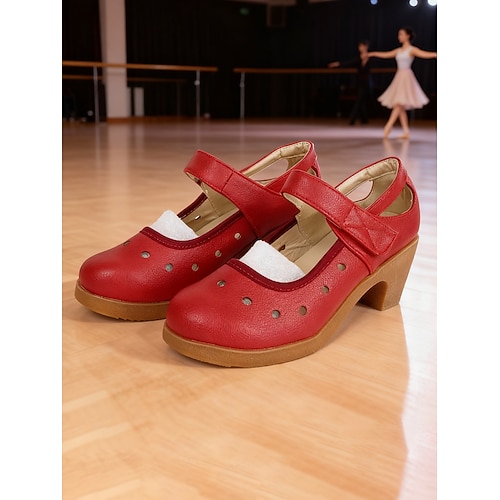scarpe da ballo comode da donna modello Mary Jane - décolleté da ballo in morbida pelle con tacco a blocco per gli spettacoli teatrali delle mamme spettacoli in costume