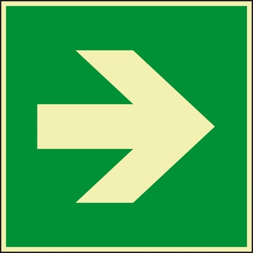 Schild I PERMALIGHT power langnachleuchtend Rettungszeichen Richtungspfeil gerade, Aluminium, 100x100mm, ASR A1.3, ISO 3684