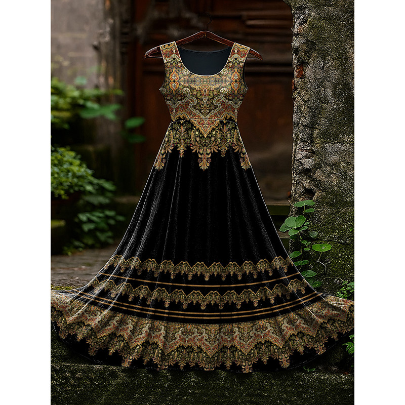 Women's Vintage Viking Celtic Knot Gradient Art Maxi Dress Sundress A Line Dress Slip Dress Pleated Dress Vacation Casual Boho Beach Regular Fit Graphic Sleeveless U Neck