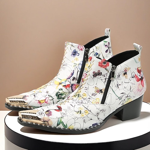 Herren-Ankle-Boots aus echtem Leder mit floralem Print – lebendiges Blumenmuster mit Reißverschluss, perfekt für modische Freizeitveranstaltungen und den Alltag.