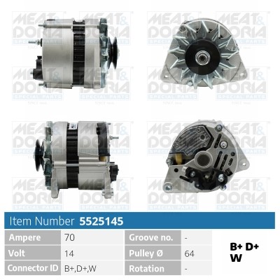 Laturi 14V 70A Meat & doria 5525145 - ford, land rover, mg - OE 1005351, 1406052, 5023531