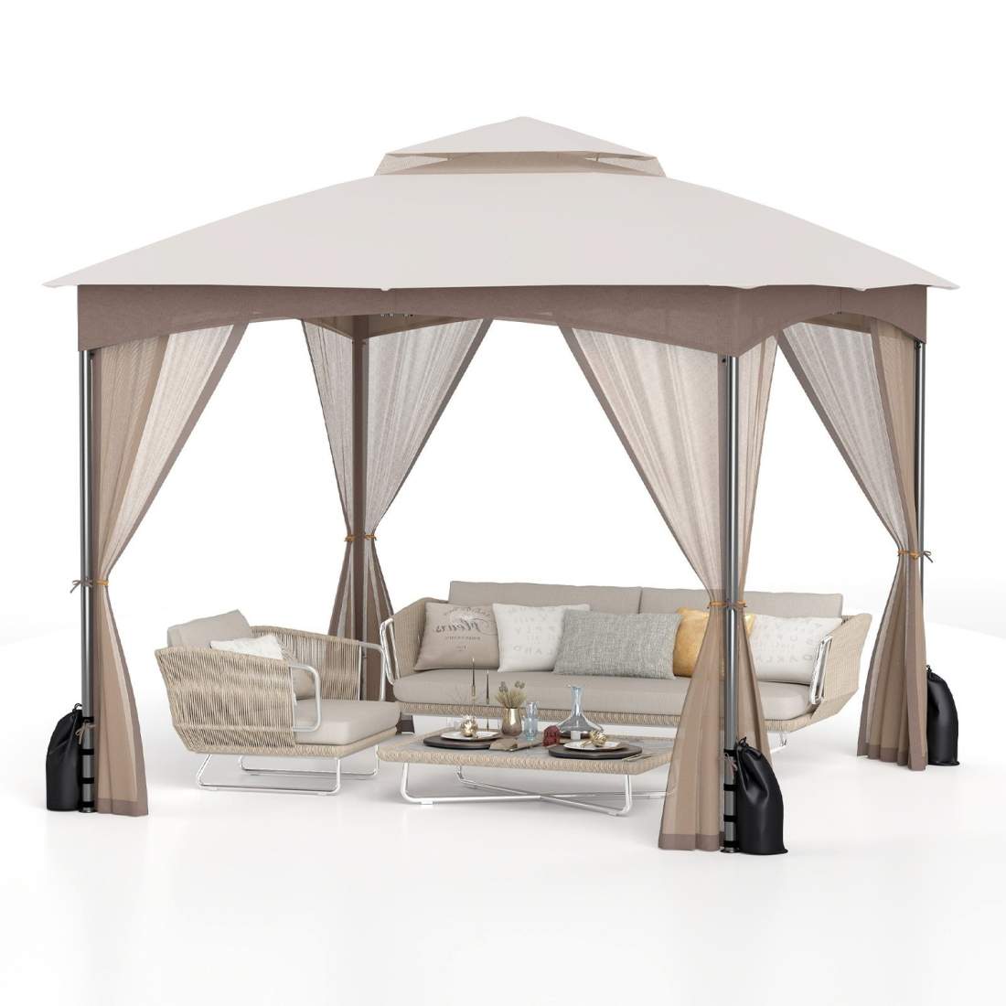 3x3 m lysthus med myggnett og sandsekker – Khaki