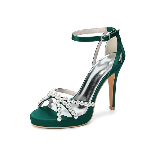 sandali da damigella rosa cipria con tacco a blocco – scarpe da sposa con tacco aperto in raso, scarpe eleganti con cinturino alla caviglia in perle e tacco alto per feste nuziali, cerimonie, ricevimenti, balli di fine anno ed eventi formali