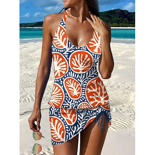 Per donna Costumi da bagno Tankini Gonna Costume da bagno All'americana Elegante Vacanza Floreale Grafico Scollo a V Senza Maniche Costumi da bagno