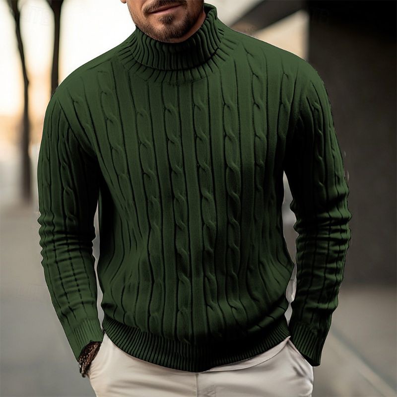 Men's Turtleneck Sweater Pullover Sweater Jumper Ribbed Cable Knit Cropped Modern Daily Wear Date Clothing Apparel Fall Winter Green Red Black White