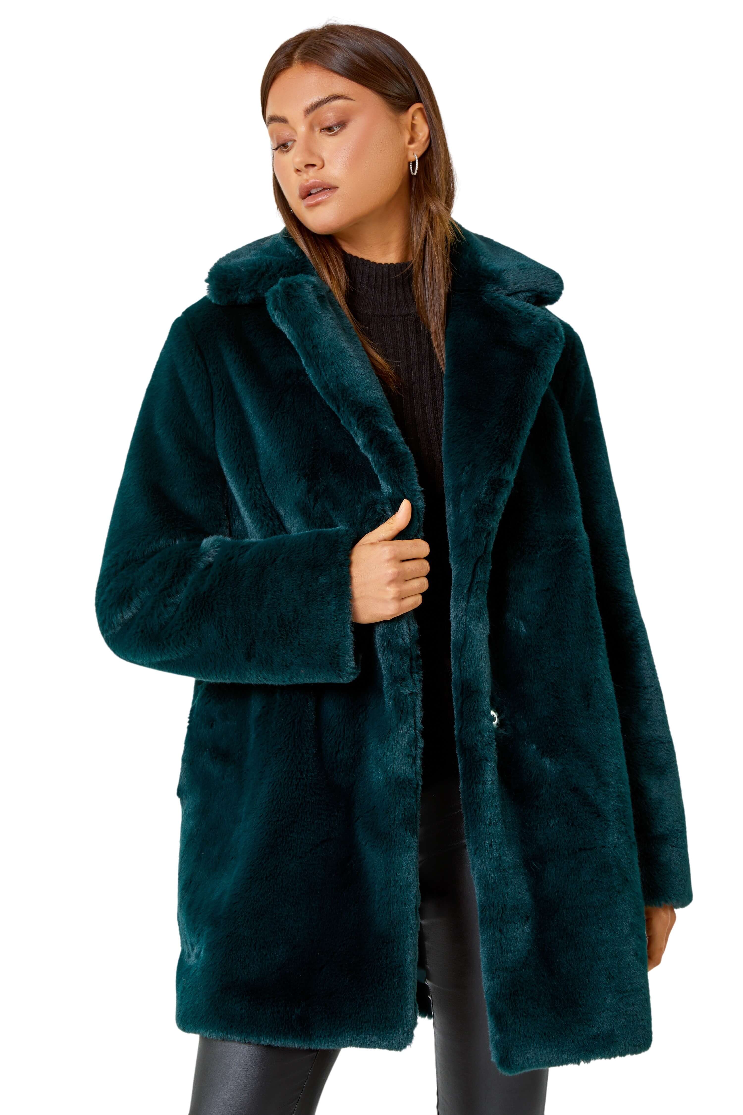 Roman Womens Faux Fur Longline Coat - Green - Size 12 UK | Roman Sale | Discount Designer Brands
