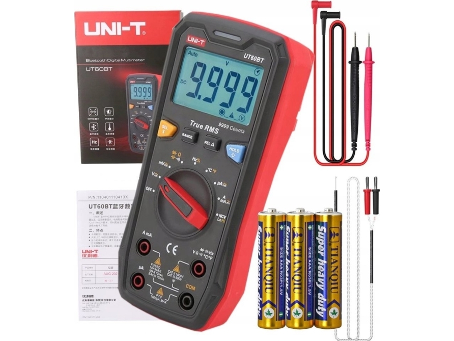 Skaitmeninis multimetras DC/AC1000V DC/AC 10A 100MΩ 10mF 10MHz -40-1000C Bluetooth, UNI-T