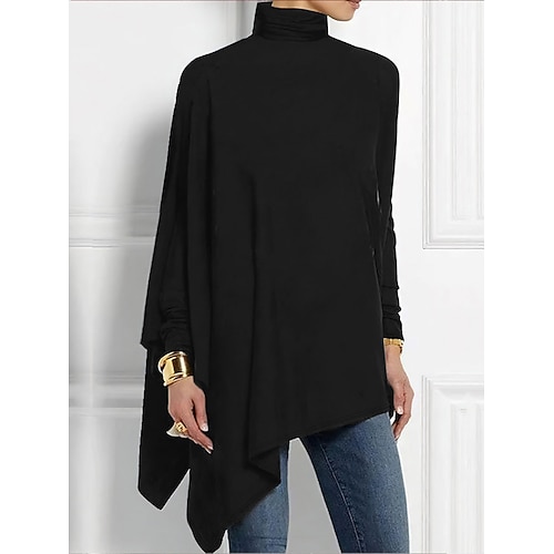 Damen T-Shirt Uni Elegant Mode Lässig Lange Ärmel Rollkragen Lange Tops Täglich Asymmetrisch Schwarz Rot Blau Lila Grün Herbst Winter