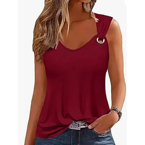 Per donna Maglietta Semplice Moda Elegante Classico Senza Maniche Scollo a V Top Regolari Quotidiano Weekend Nero Bianco Rosa Vino Verde Estate Primavera