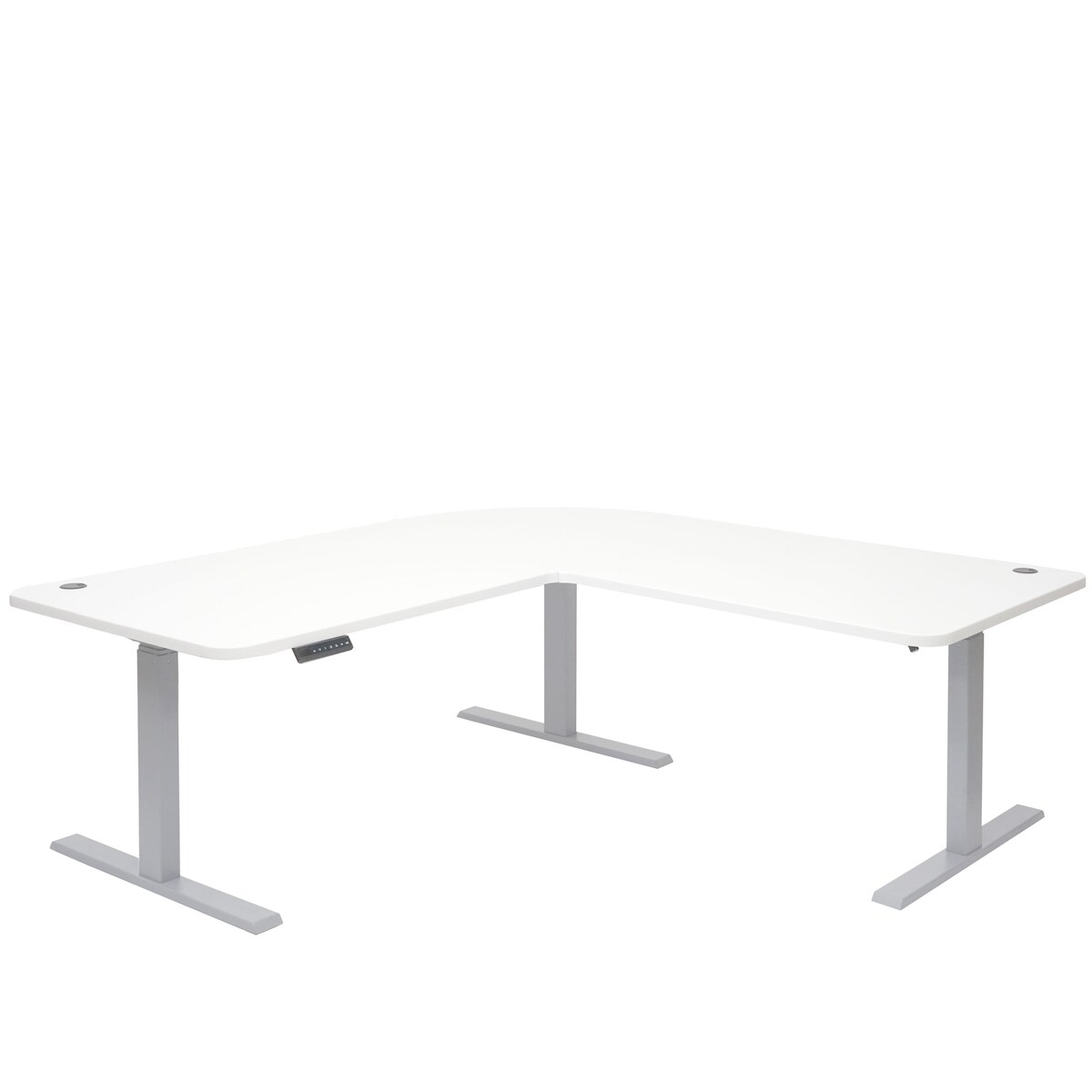 Mendler Eck-Schreibtisch HWC-D40, Computertisch elektrisch höhenverstellbar 178x178cm 84kg MVG ~ weiß, grau