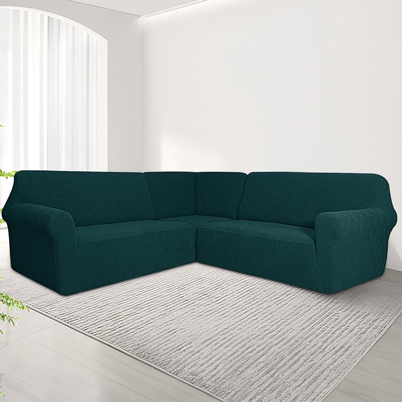 5-Seater Modular Sofa Cover Set - 3-Piece Sectional Couch Cover with 5x5 Grid Stitching and Jacquard Fabric Upholstery for Living Room