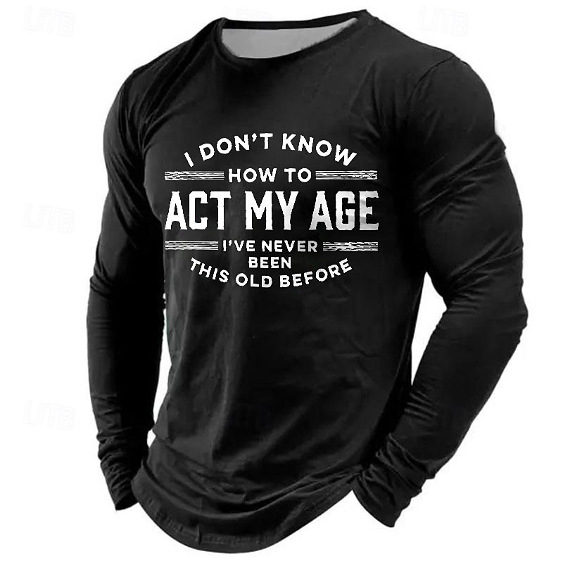 Men's Long Sleeve T-Shirt, Funny Graphic Tee: 'I Don't Know How To Act My Age I've Never Been This Old Before' Lifestyle Humor