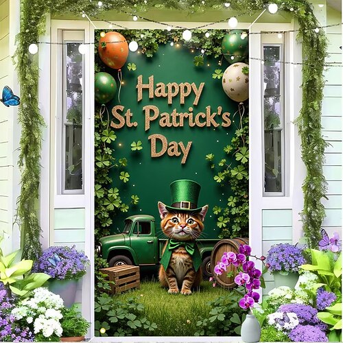Festa di San Patrizio Poster Copertura della porta Banner per esterni Cappello verde Trifoglio Carino 3D Da serata Dormitorio Stanza per adolescenti Dormitorio universitario Ragazzi Man Cave Frat