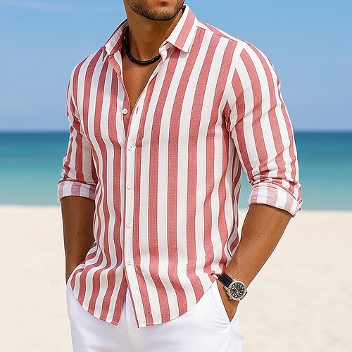 Per uomo Camicia Camicia di lino Camicia Estiva Camicia da Spiaggia Camicia in cotone e lino Camicie a righe A righe Casuale Abbigliamento casual alla moda Blu Rosa Verde Cachi Manica Lunga Collo