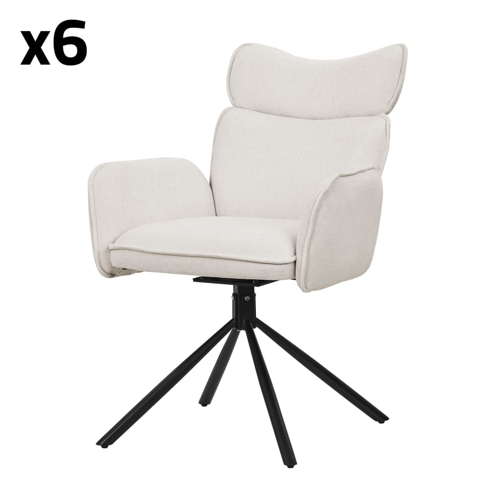Set di 6 sedie da scrivania beige girevoli 360° braccioli e schienale