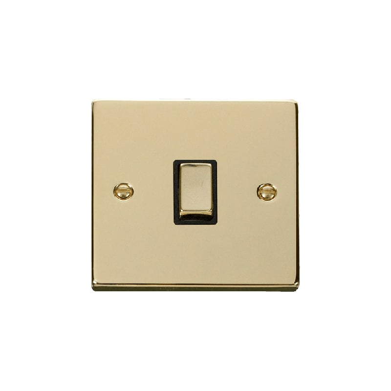 Click Deco 20A 1 Gang Double Pole 'Ingot' Switch Polished Brass Insert Black