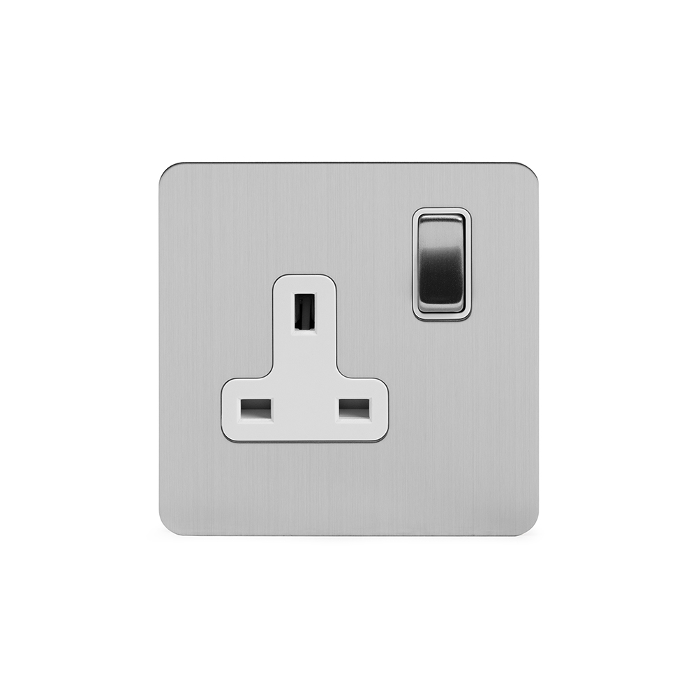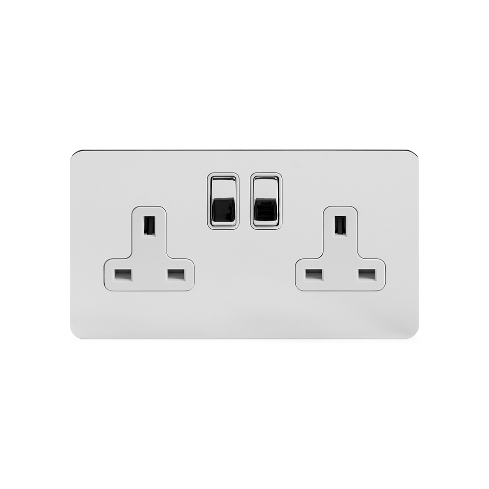 Soho Lighting Polished Chrome Flat Plate 13A 2 Gang Switched Socket - Double Pole Wht Ins Screwless