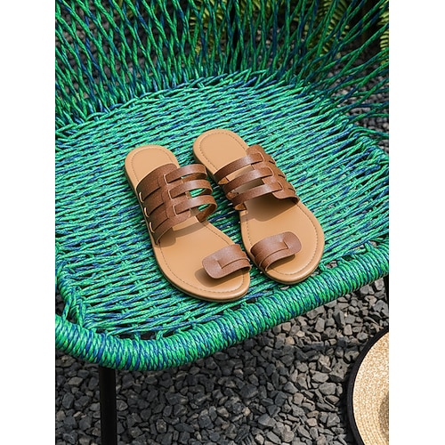sandali da donna con cinturino marrone e design ad anello per le dita dei piedi, scarpe estive casual da indossare tutti i giorni, in spiaggia, in vacanza e in stile rilassato