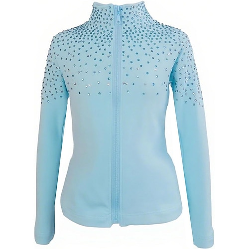 giacca in pile per pattinaggio artistico, giacca da pattinaggio sul ghiaccio da donna e da ragazza, top azzurro cielo, elasticizzato, abbigliamento da pattinaggio per allenamento e competizione,