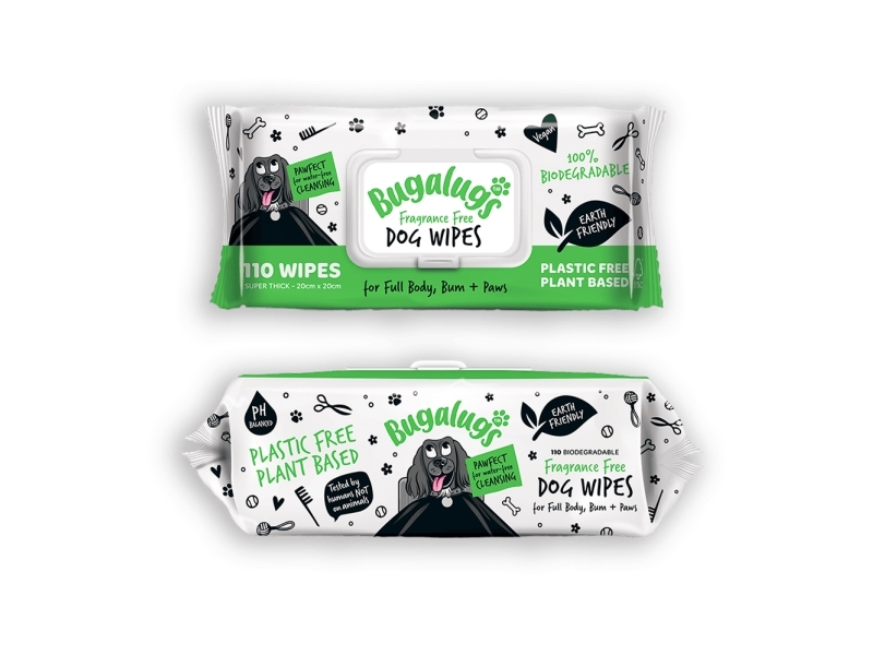 Bugalugs Tuoksuttomat kosteuspyyhkeet koko vartalolle, pyllylle ja tassuille (110 kpl)