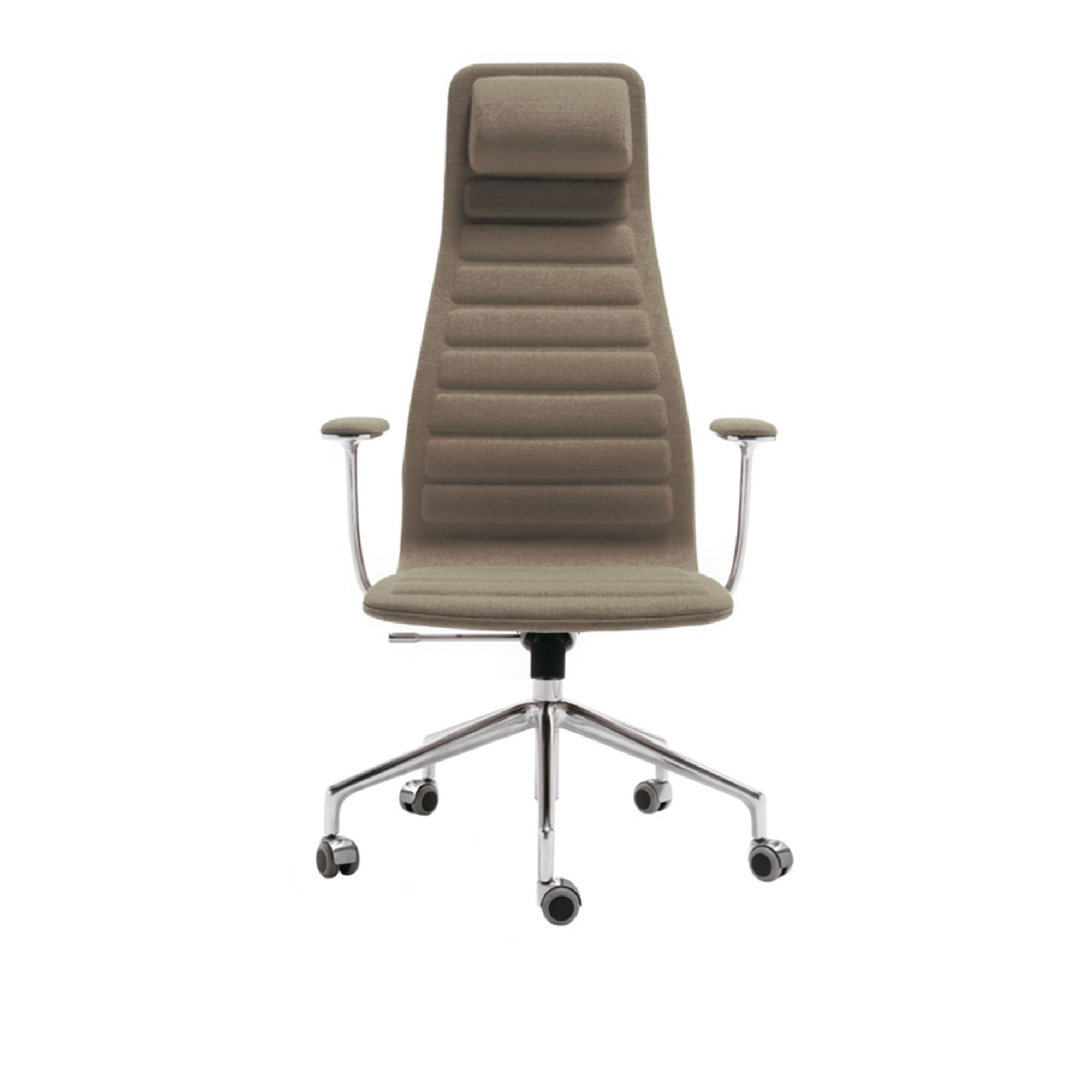 Cappellini - Lotus High Chair Armrest,5-spoke CastSwivelingBase, 5 Wheels,FixedCoverLeather Cat. G2, PelleSoft 2022, Base Finish 407 Polish Chrome, Anthracite (RAL 7021) Casters - Skrivbordsstolar - Jasper Morrison - Brun