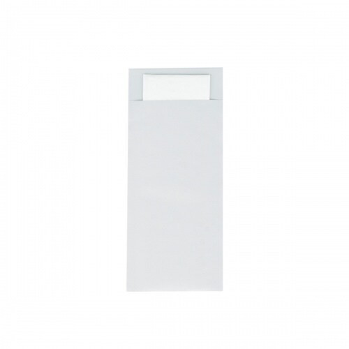 Sovie HORECA Papierbestecktaschen in Perlgrau mit Tissue-Serviette in Weiß, 20 cm x 8,5 cm - 500 Stück